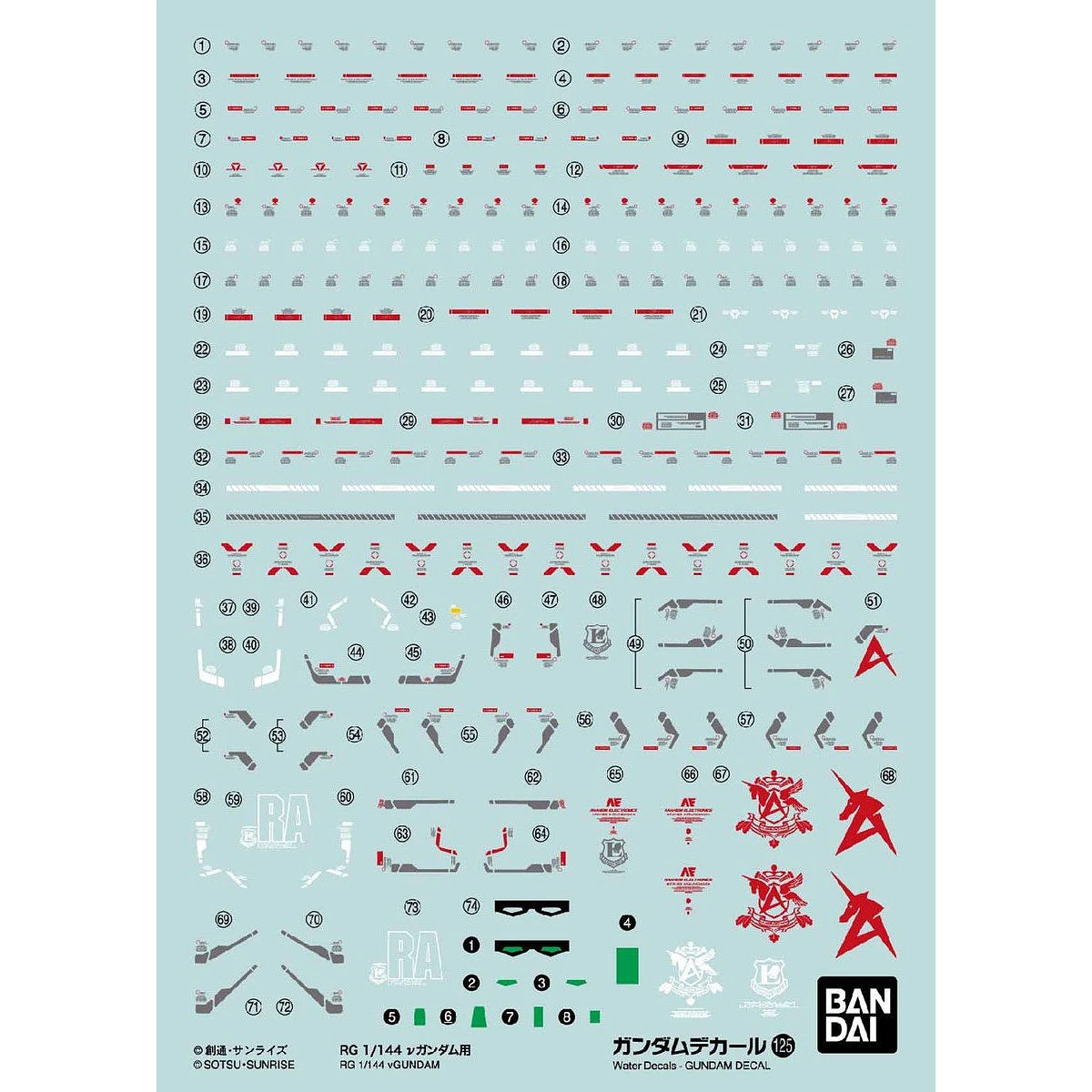 Bandai 1 PACK DECAL N°125 RG GUNDAM NU 1/144